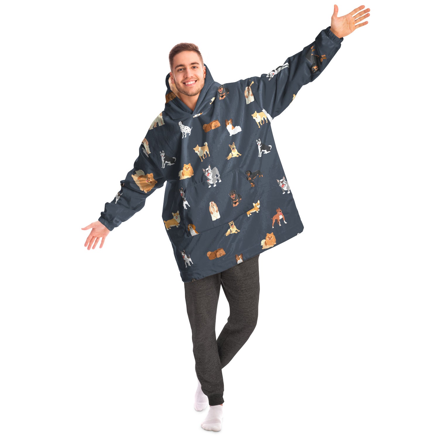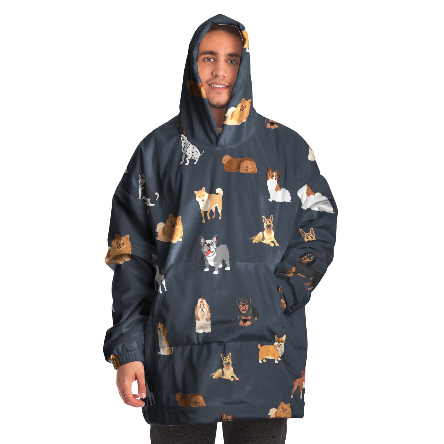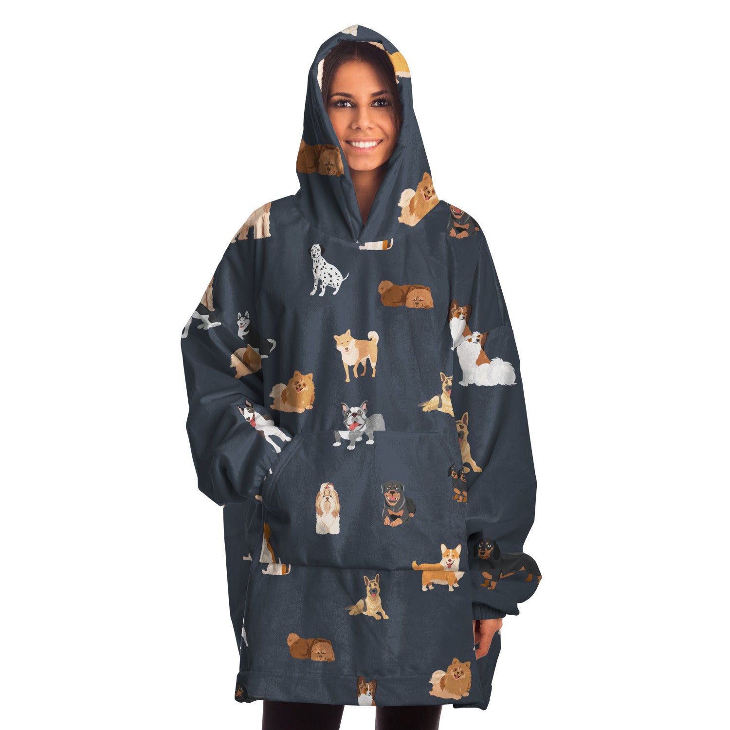 A "Snug Hoodie" is a one-size fits all wearable blanket. This snug hoodie is crafted from an outer silky smooth micro-mink polyester face. And for the inside we have an ultra soft microfiber fleece lining. Each panel is individually printed, cut and sewn to ensure a flawless graphic with no imperfections.
